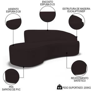 Sofá Living 2 Lugares 180cm Braço Direito Mozart D06 Sintético Marrom - Mpozenato