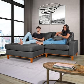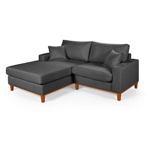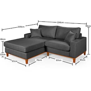 Sofa Living 2 Lugares Chaise Revestido Linho Base em Madeira - Grafite