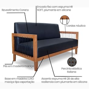 Assento: Fixo com percintas elásticas italiana, espuma HR28 e plumante em silicone