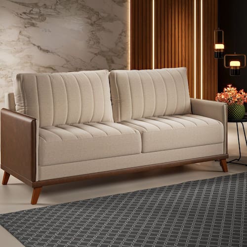 O estofado Living Seletto é a escolha ideal para quem busca elegância e conforto em um único produto. Com espuma de assento D23, proporciona uma sensação agradável e aconchegante, sendo perfeito para momentos de relaxamento. Suas laterais em sintético conferem sofisticação e durabilidade, enquanto os pés de madeira garantem estabilidade e um toque rústico ao design. As almofadas 100% fibra siliconada oferecem maior conforto e uma durabilidade superior, mantendo a forma por muito mais tempo. Além disso, o assento e as almofadas bordadas reforçam o estilo refinado, combinando com o design retro que caracteriza este móvel. Este modelo é perfeito para quem busca aliar qualidade, beleza e funcionalidade. Produto Montado: Sim Acompanha Almofadas extras: Não Almofada do assento: Fixa Almofada do encosto: Removível Altura do assento até o chão: 46.0000 Altura do Encosto: 46 cm Altura dos Pés: 13 cm Altura Máxima dos Pés: 13.0000 Ambiente Principal: Sala de Estar codigo_ean: 7900288098030 Complexidade da Montagem: Média: pode ser montado por mais de uma pessoa e/ou necessite de maior conhecimento para montagem Cor: Bronze Cor do Produto: Bronze Densidade do Assento: D-23 Enchimento do Assento: Espuma Firmeza do Assento: Médio Informações Complementares: Estofado Living Seletto 4 lugares Itens Inclusos: 1 Sofá + Kit Ferragem + Manual de Montagem Manual de Montagem e Instalação: https://product-hub-prd.madeiramadeira.com.br/982469/documents/fe74d02c-acdb-4fc7-bd9e-bb52bbe9f5df276004352817428251910953.pdf Marca: Viero Material dos Pés: Madeira Necessita Montagem: Sim Nível de Conforto: Confortável Origem do Produto: Nacional Peso: 59 kg Pet Friendly: Não Possui Mola: Sim Possui Percintas Elásticas: Sim Possui Pés: 04 Possui Rodízio: Não Recomendações de Uso, Manutenção e Limpeza: limpar com pano levemente umedecido em água Sistema de Montagem: Parafusos Suporta Até (kg): 180 kg Tecido Predominante: Linho Tipo de Encosto: Fixo Tipo de Mola: Molas Bonnel Tipo de Sofá: Sofá Comum