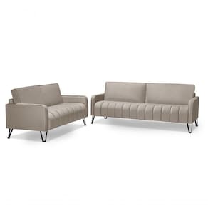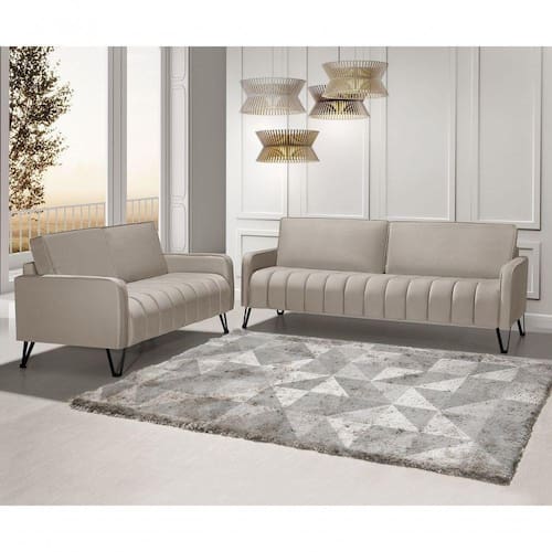 Sofá Living 3 E 2 Lugares Savana - 2,20/1,58mts Com Pé De Ferro Preto - Veludo Bege