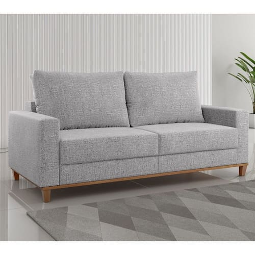 O estofado Living Livia é uma opção elegante e confortável para a sua sala de estar. Com 1,80m de largura, acomoda até 3 pessoas com praticidade, possui pés de madeira que garantem charme e resistência. Suas almofadas removíveis, preenchidas com 100% fibra siliconada, oferecem maciez extra. O assento é composto por espuma D23, manta de fibra siliconada e 1 mola Bonnel de 10cm no centro de cada assento.