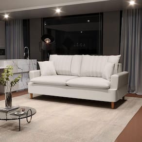 Um dos momentos mais prazerosos e de mais aconchego para a família é sem dúvida se reunir na sala de estar de casa. Uma conversa animada, um bom filme, relaxa e nos une com quem a gente mais ama. Foi pensando nisso que criamos um estofado de alta qualidade e conforto. Estamos falando do Sofá Living 3 Lugares 200cm com Almofadas Veras D05 Linho Cru - Mpozenato.
