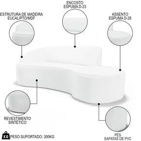 Sofá Living 3 Lugares 210cm Braço Esquerdo Mozart D06 Sintético Branco - Mpozenato