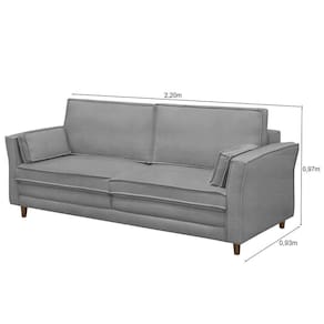 Com estrutura robusta e firme, fabricado com madeira maciça e tapeçaria com espuma de alta densidade, o Sofá Living 3 Lugares 220cm Pés Madeira Efraim F05 Veludo Prata, da Mpozenato, é o estofado ideal para quem procura conforto aliado ao toque de sofisticação. Vem conferir!