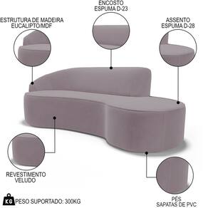 Conheça o Sofá Living 3 Lugares 260cm Braço Esquerdo Mozart D06 Veludo Rosê, da Mpozenato – uma obra-prima de design e conforto que elevará sua sala de estar a novos patamares.