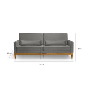 Sofá Living 3 lugares 200cm Julie irá transformar sua sala em um ambiente de conforto, bem estar e modernidade, acomodando até 3 pessoas sentadas. Fabricado com madeira de eucalipto 100% reflorestada, seu revestimento em Sued 100% poliéster, que agrega elegância e estilo ao produto. Almofadas fixas com enchimento com espuma D26, o assento possui percintas elásticas e espuma D26 de alta qualidade que faz esse produto ter um alto nível de conforto e qualidade.