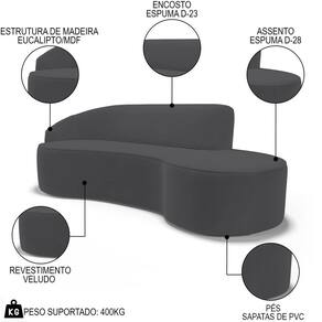 Com seu design curvo e configuração de braço do lado esquerdo, esse sofá não é apenas uma peça de mobília, mas uma obra de arte. Fabricado com atenção meticulosa aos detalhes e com acabamento nos mais altos padrões, ele exala elegância e sofisticação. Seja para uma reunião ou simplesmente para relaxar após um longo dia, esse sofá 4 lugares é ideal para criar uma atmosfera aconchegante e convidativa ao seu ambiente. Atualize o seu espaço com este sofá decorativo impressionante e transforme o seu espaço em um paraíso de estilo e conforto.