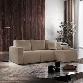 O Sofa Living conta com 01 modulo de 90cm com braco de 15cm, 01 modulo central de 90cm sem bracos e 01 chaise do lado direito de 90cm com braco de 15cm, totalizando uma largura de 300cm.
