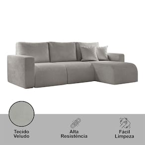 Sofá Living 90cm + 90cm Com Chaise Direito Meu Sofá Online B026 Veludo Prata