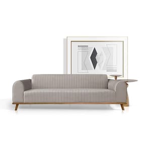 AS IMAGENS SÃO MERAMENTE ILUSTRATIVAS E PODEM SOFRER VARIAÇÕES DE COR E PEQUENOS DETALHES DE ACORDO COM O SEU MONITOR, ILUMINAÇÃO DO AMBIENTE E ATÉ MESMO A SUA PERCEPÇÃO VISUAL.Sofà Living Ãtila 2,10m em Veludo Bege Base Madeira MaciÃa