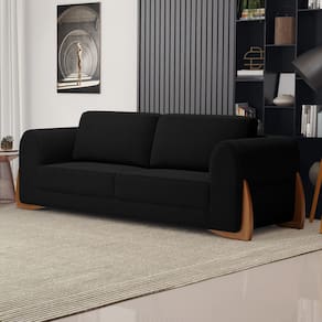 Sofá Living Bloom 160cm 02 Lugares com Pés de Madeira Bouclê Preto - Abmaza