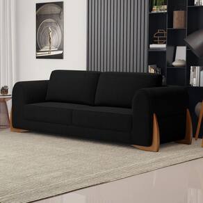 Sofá Living Bloom 180cm 02 Lugares Com Pés De Madeira Bouclê Preto - Desk Design