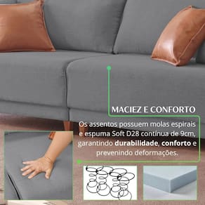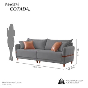 Este sofá estofado em linho exala sofisticação e conforto, complementado por um elegante detalhe em courino nos braços. Duas almofadas em linho proporcionam suavidade e aconchego, enquanto duas almofadas em courino acrescentam um toque moderno e distinto. Ideal para quem busca um mobiliário que une estilo e funcionalidade, é a escolha perfeita para qualquer ambiente. Produto Montado: Sim Acompanha Almofadas extras: 04 Almofada do assento: Fixa Almofada do encosto: Removível Altura do assento até o chão: 45.0000 Altura do Encosto: 94 cm Ambiente Principal: Sala de Estar codigo_ean: 7909903856697 Complexidade da Montagem: Baixa: pode ser montado por uma pessoa sozinha Cor: Cinza/Marrom Cor do Produto: Cinza/Marrom Itens Inclusos: 1 sofá living. Linha ou Coleção: Canela Marca: Lufer Estofados Material dos Pés: Madeira Maciça Necessita Montagem: Sim Peso: 63 kg Pet Friendly: Não Possui Percintas Elásticas: Não Possui Pés: 08 Possui Rodízio: Não Recomendações de Uso, Manutenção e Limpeza: Um pano seco e um pano levemente umedecido, evitar alvejantes e produtos de limpeza. Sistema de Montagem: Encaixe. Suporta Até (kg): 120 kg Tecido Predominante: Linho Tipo de Encosto: Fixo