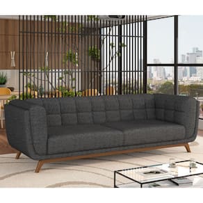 Com design contemporâneo, esse sofá 3 lugares é a combinação de bom gosto aliado à estrutura robusta que garante resistência e durabilidade. Além disso, o conforto é evidenciado pela tapeçaria com espuma de alta densidade, ao passo que o revestimento com tonalidade sóbria facilita a harmonização com vários estilos de decoração. Já os pés em madeira garantem o toque clássico e deixa esse estofado ainda mais elegante.