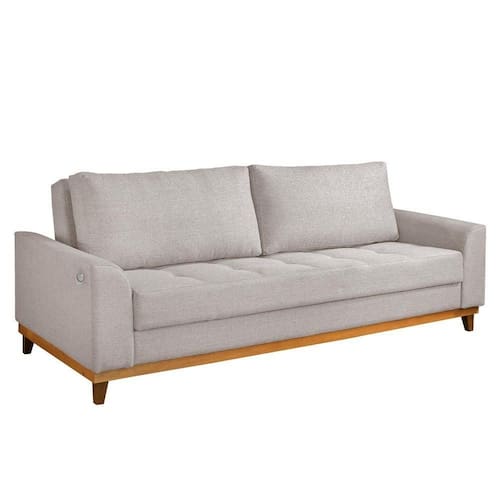 Feito com materiais de alta qualidade, o Sofá Jasmin possui uma estrutura robusta de madeira reflorestada que garante durabilidade e estabilidade. O linho, suave ao toque, proporciona uma sensação de aconchego, enquanto os pés de madeira adicionam um toque natural e sofisticado ao conjunto. Mas o verdadeiro encanto do Sofá Jasmin está em sua capacidade de se transformar. Com um simples movimento, você pode estender os assentos retráteis e reclinar o encosto, transformando-o em uma cama confortável. Isso faz com que seja a escolha perfeita para acomodar visitas inesperadas ou para aqueles momentos em que você quer se esticar e relaxar completamente. Ele oferece o melhor dos dois mundos: a elegância de um sofá living e a funcionalidade de um sofá-cama.
