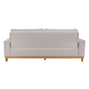 Material: Produto feito com madeira de reflorestamento e revestido com linho 100% poliéster. Possui no assento a espuma contínua D28 supersoft, Mola espiral de aço e percinta elásticas sintéticas, garantindo o conforto e durabilidade do produto. O encosto possui almofadas de fibra de silicone, possui ainda rodapé e pés de madeira maciça.