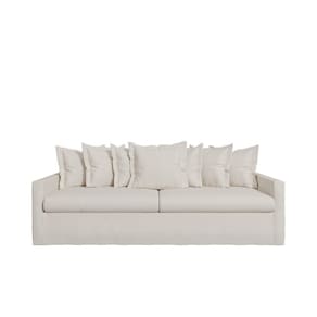 O Sofá Laguna não é apenas lindo e confortável; ele também é produzido com matérias-primas de alta qualidade. Sua estrutura é feita de madeira de eucalipto de reflorestamento com 25 mm de espessura, refletindo nosso compromisso com a sustentabilidade. O assento é estruturado com percintas elásticas, molas espirais de aço e almofadas soltas de espuma contínua D28 Supersoft, todas revestidas com capas de linho com zíper. O encosto possui almofadas soltas preenchidas com fibras de silicone, também revestidas com capas de linho removíveis.