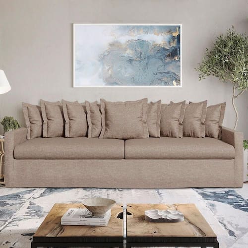 Uma das características mais marcantes do Sofá Laguna é sua capa externa de linho, que pode ser facilmente trocada ou removida para limpeza. Sim, você pode lavá-la na máquina de lavar! Além disso, o sofá é revestido com um forro de veludo que não só adiciona um toque extra de luxo, mas também aumenta a durabilidade do produto. Os pés do Sofá Laguna são feitos de ABS resistente e já vêm instalados, proporcionando ainda mais praticidade. Cada detalhe foi cuidadosamente pensado para oferecer a você um sofá que não só embeleza seu espaço, mas também proporciona um conforto incomparável.