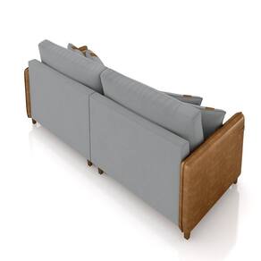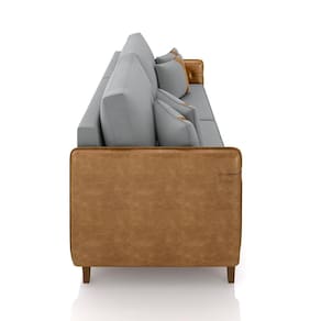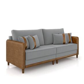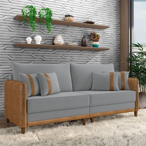 Sofá Living Montecarlo 2 Lugares Bipartido 172cm Pés Em Madeira Veludo/pu Cinza/caramelo G33 - Gran Belo