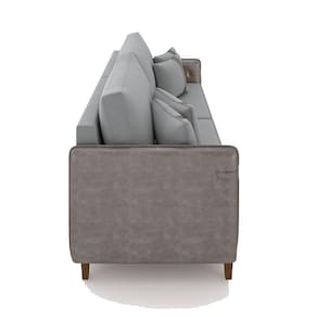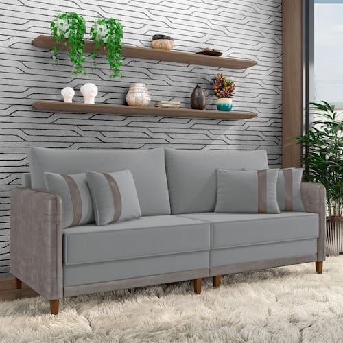 Sofá Living Montecarlo 3 Lugares Bipartido 232cm Pés Em Madeira Veludo/pu Cinza G33 - Gran Belo
