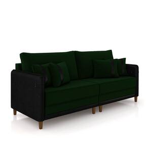 Sofá Living Montecarlo 3 Lugares Bipartido 232cm Pés Em Madeira Veludo-pu Verde-preto G33 Gran Belo