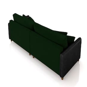 Sofá Living Montecarlo 3 Lugares Bipartido 232cm Pés Em Madeira Veludo/pu Verde/preto G33 - Gran Belo