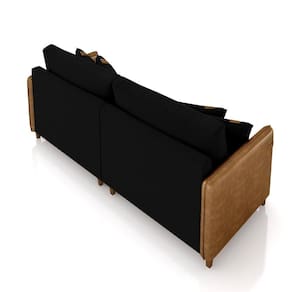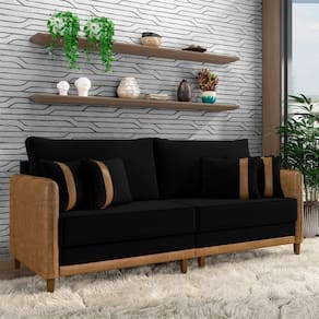 Sofá Living Montecarlo 3 Lugares Bipartido 252cm Pés Em Madeira Veludo/pu Preto/caramelo G33 - Gran Belo