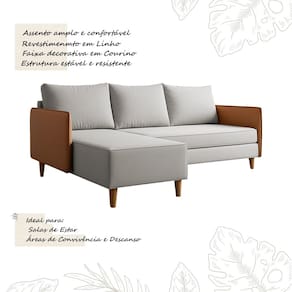 O Sofá Roma foi pensado para quem busca conforto aliado à estética refinada. Seu revestimento mescla dois materiais de alto padrão: o corino nos braços, que confere um toque moderno e de fácil limpeza, e o linho no estofado, que traz leveza e textura suave ao toque. A estrutura sólida garante estabilidade, enquanto as almofadas macias proporcionam o apoio ideal para momentos de descanso. Com design versátil e proporções equilibradas, o Sofá Roma se adapta a diversos estilos de decoração, valorizando o ambiente com elegância e conforto.