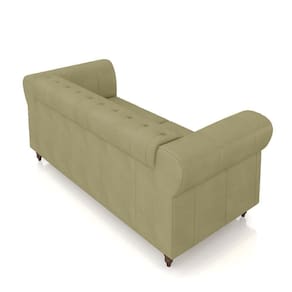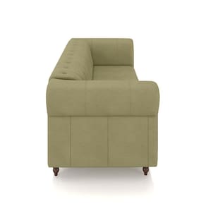 O revestimento em couro confere um aspecto luxuoso e elegante, refletindo o estilo clássico Chesterfield. Seus pés torneados fixos, em madeira maciça, adicionam um charme adicional e garantem estabilidade.