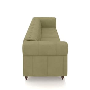 O revestimento em couro confere um aspecto luxuoso e elegante, refletindo o estilo clássico Chesterfield. Seus pés torneados fixos, em madeira maciça, adicionam um charme adicional e garantem estabilidade.
