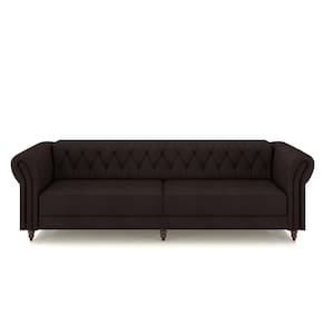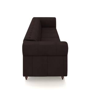 O revestimento em couro confere um aspecto luxuoso e elegante, refletindo o estilo clássico Chesterfield. Seus pés torneados fixos, em madeira maciça, adicionam um charme adicional e garantem estabilidade.