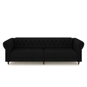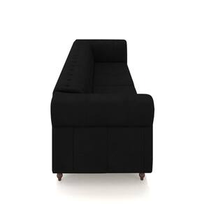Sofá Living Sala De Estar Stanford Chesterfield 3 Lugares 240cm Pés De Madeira Couro Preto G58 - Gran Belo