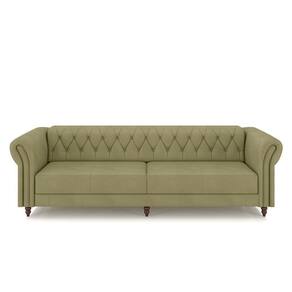 O revestimento em couro confere um aspecto luxuoso e elegante, refletindo o estilo clássico Chesterfield. Seus pés torneados fixos, em madeira maciça, adicionam um charme adicional e garantem estabilidade.