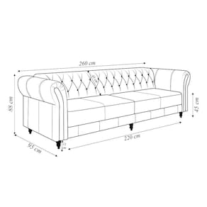 Altura do Produto (cm): 88 | Comnto do Produto (cm): 95 | Largura do Produto (cm): 260