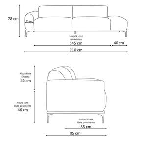 Outras Medidas:Altura do Encosto: 40 cmAltura do Assento ao Chão: 46 cmAltura do Braço: 20 cmAltura dos Pés: 18 cmLargura do Assento: 145 cmProfundidade Livre do Assento: 55 cmLargura do Braço: 25 cm