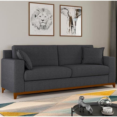 Compacto, atemporal e elegante. Confeccionado com materiais de alta qualidade : percintas elásticas, encosto com espuma D20A hiper soft, assentos e braços com espuma D30 soft, o Estofado Slim 3 lugares foi inspirado no conceito da versatilidade e conforto extremo. Elementar para os mais variados estilos de decoração, seu design Slim se encaixa tanto para a sua sala de estar quanto para o seu escritório com dimensões de comprimento ideais para a otimização de espaços. Acompanha duas lindas almofadas. Produto Montado: Sim Acompanha Almofadas extras: Não Almofada do assento: Fixa Almofada do encosto: Fixa Altura do assento até o chão: 47.0000 Altura do Encosto: 48 cm Altura dos Pés: 13 cm Altura Máxima dos Pés: 13.0000 Ambiente Principal: Sala de Estar codigo_ean: 7909903616628 Complexidade da Montagem: Baixa: pode ser montado por uma pessoa sozinha Cor: Grafite Cor do Produto: Grafite Enchimento do Encosto: Fibra Siliconada Itens Inclusos: 1 sofa de 2 metros + manual de montagem + kit pes Manual de Montagem e Instalação: https://product-hub-prd.madeiramadeira.com.br/898627/documents/1d81c75c-25fa-492f-8ef4-3bcf5887d8b08manualmontagemac162slim2m.pdf Material dos Pés: Eucalipto Necessita Montagem: Sim Origem do Produto: Nacional Peso: 45 kg Pet Friendly: Não Possui Percintas Elásticas: Sim Possui Pés: 05 Possui Rodízio: Não Recomendações de Uso, Manutenção e Limpeza: Não molhar o estofado, não deixar por longas horas exposto ao sol, usar apenas água na limpeza do estofado Sistema de Montagem: PARAFUSOS Suporta Até (kg): 140 kg Tecido Predominante: Linho Tipo de Encosto: Fixo Tipo de Mola: Não Possui