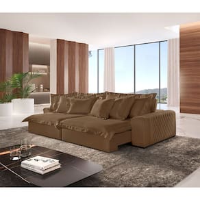 Braço: Espuma D28, tecido com matelassê. Incluso: almofadas decorativas.