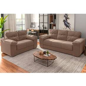 Sofá Mamflex 1025 Londrina 3 e 2 lugares em tecido veludo Choco - Marrom