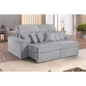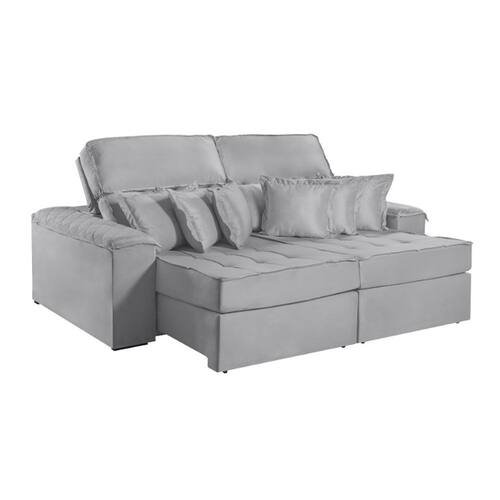 Caracteristicas do produto: Quantidade de Lugares: 4 LUGARES Requer Montagem ?: SIM Acessórios inclusos: ALMOFADAS DECORATIVAS Acompanha Chaise ?: NÃO Tipo do Acento, tem Pillow Top ?: RETRÁTIL, COM PILLOW TOP DE 20CM Densidade Espuma Assento: D-28 Possui Mola no Assento ? Tipo de mola ?: SIM, MOLAS ENSACADAS Possui Persinta ? Tipo de Persinta: SIM, PERCINTA ELASTICA Tipo do Encosto: RECLINÁVEL / ENCOSTO FIBRA SILICONE Almofadas do encosto Fixa ou Solta?: ENCOSTO RECLINÁVEL, ALMOFADAS FIXA Densidade Espuma Encosto: 100 FIBRA SILICONE Densidade espuma do Braço: 100 FIBRA SILICONE Tem pillow nos Braços ?: PILLOW TOP 8CM - 100 FIBRA SILICONE Possui Pés -Sim ou Não-: SIM Quantidade de Pés: 8 Tipo de Pés -Material e cor-: MADEIRA , COR TABACO Acompanha Rodízio -Sim ou Não-: SIM Quantidade de Rodízios: 2 RODÍZIOS Material Rodízio: SILICONE Cor Rodízio: INCOLOR Matéria Prima: ELCALIPTO TRATADO Revestimento: ESPUMA D-28 SOFT Madeira Aparelhada ou Bruta?: APARELHADA A Madeira é Tratada? -Sim ou Não-: SIM Tipo de Trilho Onde Corre o Retrátil?: TUBO PINTADO Sofá é Bipartido ou Inteiriço?: BIPARTIDO Estágios da Catraca: CATACRA 5 ESTÁGIOS Conteúdo da Embalagem: PAPELÃO, MANTA E ESPUMA NAS QUINAS
