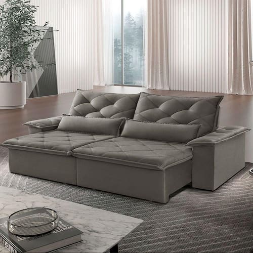 Design diferenciado, qualidade impecavel. A sua sala de estar so esta completa na presenca de um bom sofa e nada mais gostoso do que receber a familia ou curtir os seus os de descanso junto com nosso modelo Melt! Pensado para quem quer aliar bom gosto uma estrutura reforcada para o uso diario, a peca tem madeira na composicao e revestimento de toque agradavel para garantir a qualidade que voce merece.