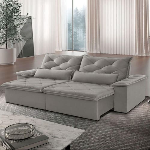 Design diferenciado, qualidade impecavel. A sua sala de estar so esta completa na presenca de um bom sofa e nada mais gostoso do que receber a familia ou curtir os seus momentos de descanso junto com nosso modelo Melt! Pensado para quem quer aliar bom gosto uma estrutura reforcada para o uso diario, a peca tem madeira na composicao e revestimento de toque agradavel para garantir a qualidade que voce merece.