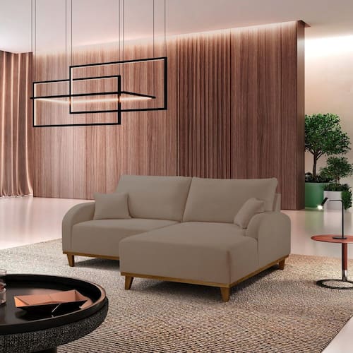 Sofá Mercúrio 2 Lugares com Chaise Lado Direito 185cm em Veludo Marrom