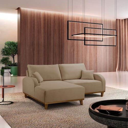 Sofá Mercúrio 2 Lugares com Chaise Lado Esquerdo 185cm em Linho Bege