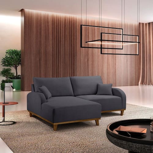 Sofá Mercúrio 2 Lugares com Chaise Lado Esquerdo 185cm em Veludo Grafite
