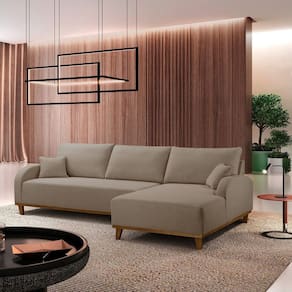 Sofá Mercúrio 3 Lugares com Chaise Lado Direito 250cm em Veludo Marrom