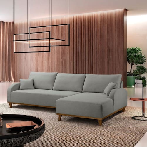 Sofá Mercúrio 4 Lugares com Chaise Lado Direito 300cm em Linho Cinza