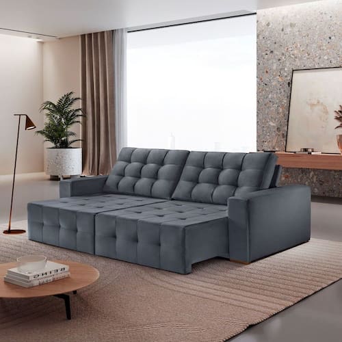 Seu mecanismo retrátil permite expandir a área útil do sofá, oferecendo maior espaço para descanso, enquanto as funcionalidades reclináveis ajustam a posição de forma prática, proporcionando conforto personalizado para cada usuário. O revestimento em tecido de alta qualidade garante durabilidade e toque macio, enquanto a estrutura robusta assegura resistência e estabilidade.