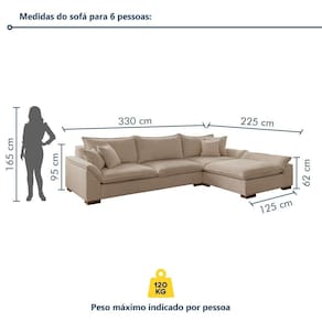 O encosto é reclinável? Sim, também vem com almofadas decorativas. Produto Montado: Sim Acompanha Almofadas extras: 04 Almofada do assento: Fixa Almofada do encosto: Removível Altura do assento até o chão: 62.0000 Altura do Encosto: 50 cm Ambiente Principal: Sala de Estar codigo_ean: 7900288230317 Complexidade da Montagem: Baixa: pode ser montado por uma pessoa sozinha Cor: Bege Cor do Produto: Bege Densidade do Assento: D-28 Enchimento do Assento: Fibra Siliconada Estilo de Braço: Um Braço Firmeza do Assento: Firme Itens Inclusos: 1 Sofá, Kit Ferragem e Manual de Montagem Lado do Sofá de Canto: Lado Maior à Esquerda Linha ou Coleção: M201 Marca: Estofados Martins Material dos Pés: Madeira Montagem Flex: 5 Necessita Montagem: Sim Origem do Produto: Nacional Peso: 116 kg Pet Friendly: Não Possui Percintas Elásticas: Sim Possui Pés: 08 Possui Rodízio: Não Recomendações de Uso, Manutenção e Limpeza: Não use produtos químicos, eles podem danificar o revestimento; Sistema de Montagem: Kit de Parufusos e Pés. Suporta Até (kg): 120 kg Tecido Predominante: Linho Tipo de Encosto: Regulável Tipo de Mola: Molas Bonnel Tipo de Sofá: Sofá de Canto Marca: Não Informado