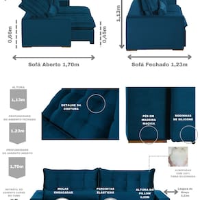 Pode haver alguma diferença de tonalidade entre imagem e o produto, por conta do tratamento de imagens e a calibração de cores da sua tela Produto Montado: Não Acompanha Almofadas extras: Não Almofada do assento: Fixa Almofada do encosto: Fixa Altura do assento até o chão: 45.0000 Altura do Encosto: 113 cm Ambiente Principal: Sala de Estar codigo_ean: 7900288091192 Cor: Azul Cor do Produto: Azul Enchimento do Encosto: Espuma Itens Inclusos: 1 Sofá Marca: Yescasa Material dos Pés: Madeira Maciça Necessita Montagem: Não Peso: 120 kg Pet Friendly: Não Possui Percintas Elásticas: Sim Possui Pés: 04 Possui Rodízio: Sim Profundidade Quando Estendido: 170 cm Profundidade quando extendido: 170.0000 Recomendações de Uso, Manutenção e Limpeza: Limpar um sofá com pano umedecido é uma maneira simples e eficaz de manter o móvel em bom estado. Rodízio com Trava: Sim Suporta Até (kg): 200 kg Tecido Predominante: Veludo Tipo de Encosto: Regulável Tipo de Mola: Molas Ensacadas Tipo de Sofá: Sofá com Chaise